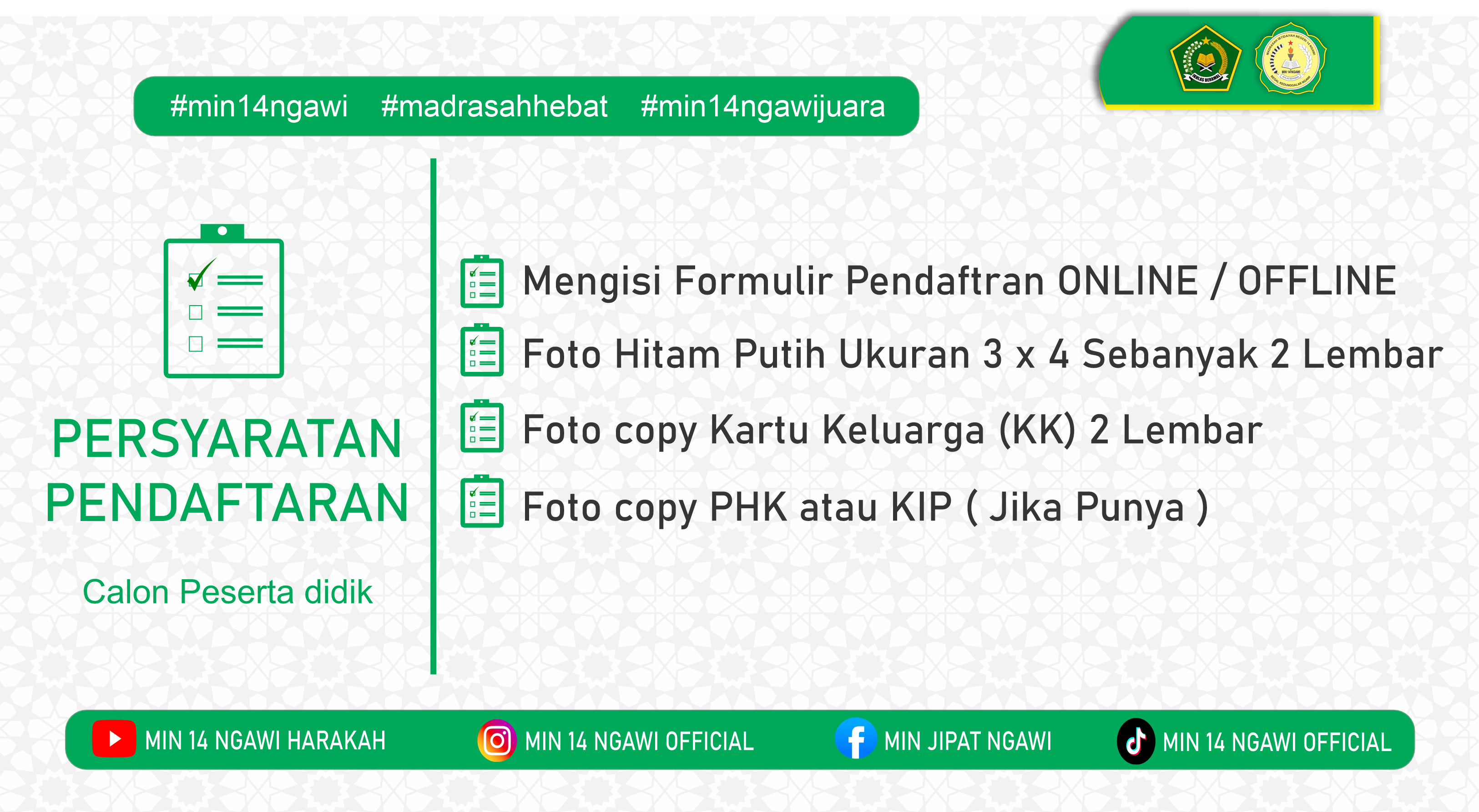 MIN 14 NGAWI menyediakan SPMB secara online diharapkan proses SPMB dapat berjalan cepat dan bisa dilakukan dimanapun dan kapanpun selama sesi SPMB dibuka. Proses pendaftaran calon Murid baru bisa mengakses website SPMB MIN 14 NGAWI.
